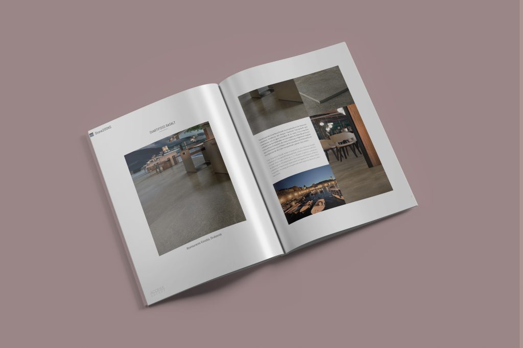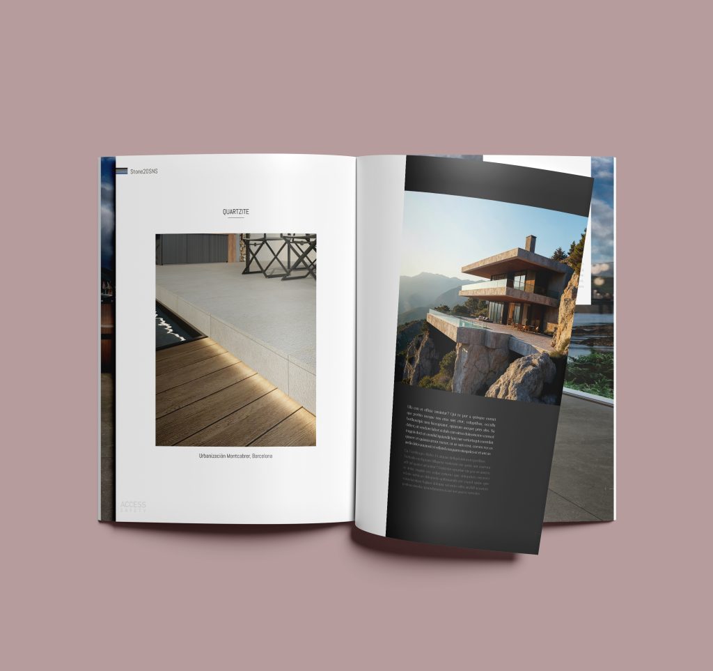 Diseño y maquetación del catálogo de producto para Access Safety, firma especializada en soluciones de pavimento técnico exterior, con una estética editorial sofisticada.